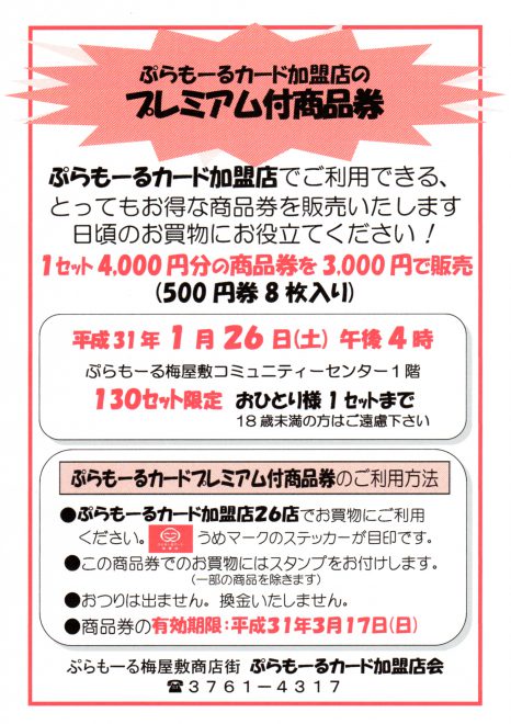商品券取扱のカード加盟店はコチラ↓ カード加盟店はこのステッカーが目印 商品券は500円券が8枚入り お財布にやさしい、とってもおトクな商品券です。 この商品券でのお買物にはポイントをお付けします。 毎日のお買物をもっと楽しく、ほんのちょっと贅沢にしてみませんか? 皆様のご来場をお待ちしております!!