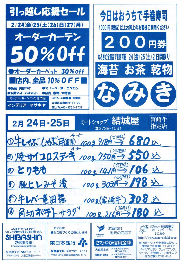 掲載店の広告には、割引券などを切り取って使用するお得な広告もあります。