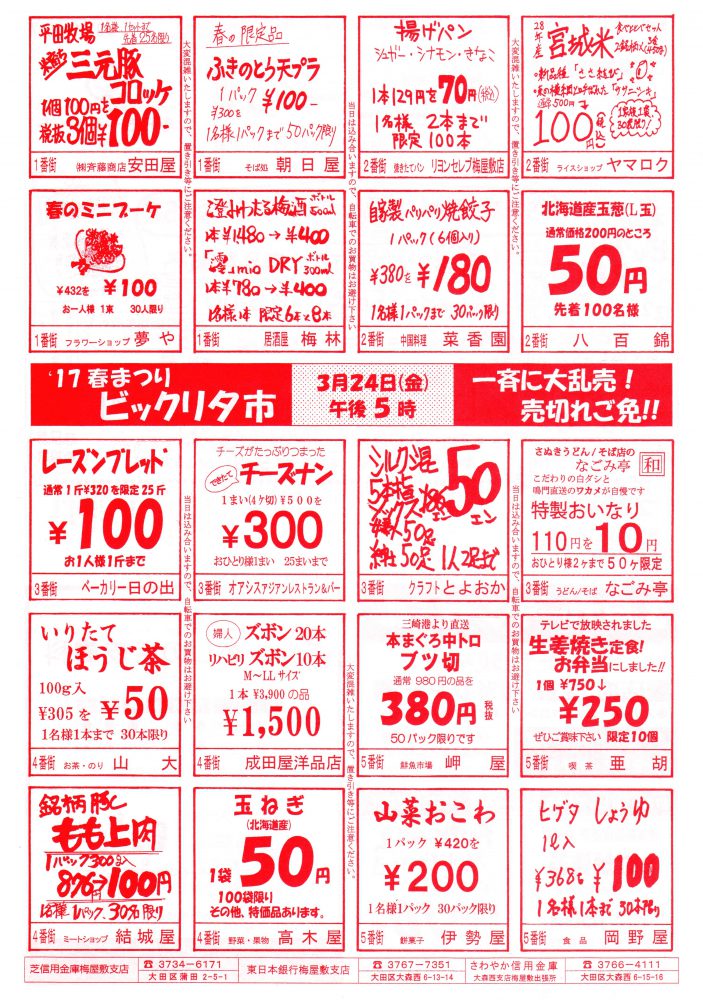 3/24(金)25(土)「’17 春まつり」の【ビックリ夕市】【春まつり商品券販売】は