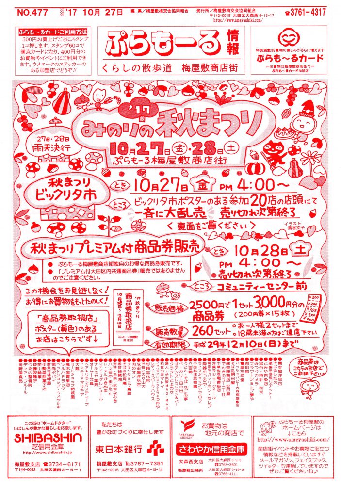 10/27(金)28(土)「’17 みのりの秋まつり」の【ビックリ夕市】【秋まつり商品券販売】は
