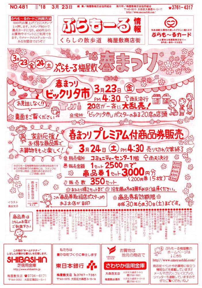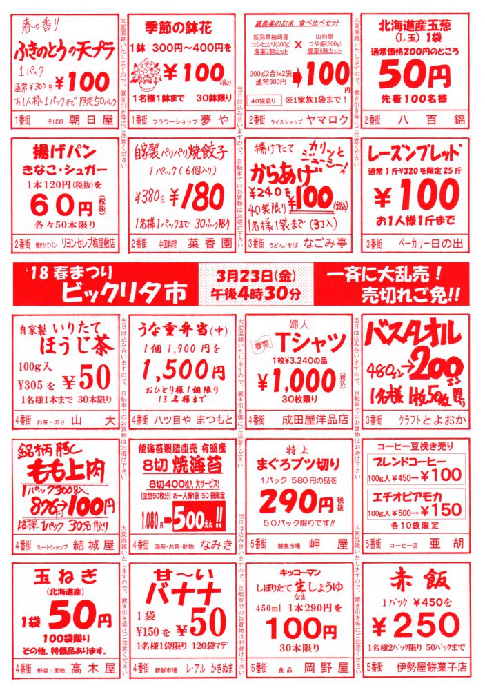 3/23(金)24(土)「’18 春まつり」の【ビックリ夕市】【春まつり商品券販売】は