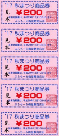 10/28(土)16:00~【秋まつりプレミアム付商品券販売】